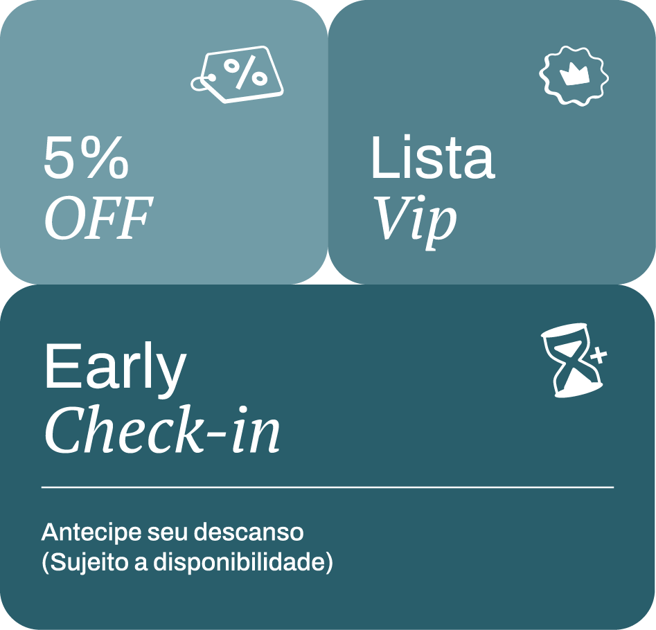 Ao se cadastrar, você já começa aproveitando benefícios especiais e, quanto mais se hospedar, mais vantagens poderá desbloquear em suas próximas estadias. Cadastre-se gratuitamente e aproveite benefícios exclusivos em todas as suas hospedagens Laghetto.
